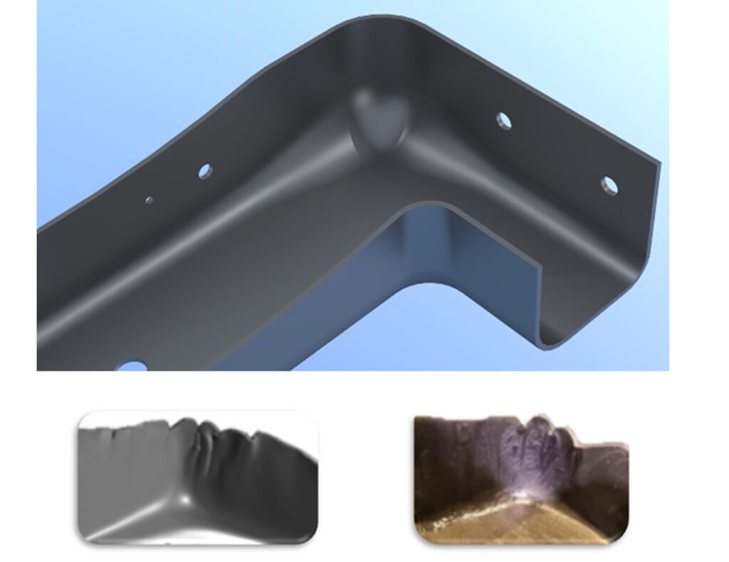 トライアウトではどの作業に最も高いスキルが求められるでしょうか? 答えは「ダイスポッティング」です。本稿では、さまざまな設備パラメータ、特に金型のたわみがダイスポッティングに与える影響、そして製造工程におけるデジタルエンジニアリングを活用した「フロントローディング」がトライアウト全体の時間をどのように短縮できるかを、オートフォーム・インディアのアプリケーションエンジニア、Sameer Chudnaik が解説します。 図1. トライアウトにおける手作業でのスポッティング 問題提起 トライアウト時間の約 35% から 40% は、初期のダイスポッティング作業に費やされます。特に主要部品の場合、品質改善を担う熟練のエンジニアには過大な負担がかかります。そのため品質改善業務が期日に間に合わない場合も稀ではありません。 負担過多の原因と工程改善を通じた緩和策 ダイスポッティングは、プレスの平行度、加工ばらつき、加工精度(加工中のカッターの摩耗など)といったさまざまな設備や工程のパラメータが影響を及ぼすため、難易度の高い工程です。本稿では「プレスと金型のたわみ」が与える影響に着目した検討を行います。 シートの変形中にはモーターから負荷がかかり、金型、ラム、ベッドが継続的にたわみます。通常、最大のプレス荷重は下死点で発生するため、経験則を用いて金型のたわみ値を計算することは困難です。金型のたわみは、以下のようなパラメータに依存します。 ダイにかかる引張力 ダイがプレス面積に占める割合 3D ダイフェースのバランス 金型の剛性 トライアウトでのスポッティングの時間が長引くことのないように、シミュレーションを用いてたわみを見込み補正する必要があります。 たわみの影響について 図 2. 左)負荷のない状態で金型が閉じると(BDC)上型と下型は直接接触します。 右)負荷がかかった状態で金型が閉じると(BDC)上型と下型はたわみます。 トライアウトでは、たわみによってシートの拘束条件が不均一になります。トライアウト担当エンジニアは、シートの両面に塗料を塗布し、ダイスポッティングを行います。これは手作業で行うため、熟練した技術が求められます。上型と下型のサーフェスを正確に一致させるスポッティング工程には、膨大な時間がかかる場合もあります。 手作業で行うスポッティングの工数を最小限に抑えるため、多くの企業では独自の手法を採用しています。 図 3. パンチとダイのたわみを補正する上で、上型のみにオーバークラウンを施しています。 下型のパンチはマスターとしてそのまま使用します(クラウンは適用しません) したがって、ダイのオーバークラウンは以下のとおり算出します。 ダイのオーバークラウン = ダイのたわみ + パンチのたわみ さらに調査を進める中で、プレス成形シミュレーションのファイル、金型設計の金型ソリッド、鋳造やプレスの弾性モデルなどの入力データを用いて、ダイのたわみを解析しました。ダイのデザインがない場合は、下図に示すように、AutoFormの基礎構造生成モデルを用いて金型ソリッドを生成することができます。 図 4. 上型のダイで 0.4 mm、下型のパンチで 0.5 mm の最大たわみ値が確認されました 経験則をもとにダイフェースのオーバークラウンを行う企業もありますが、金型の中心部にオーバークラウンを施しても、多くの場合、実際のたわみパターンは想定通りになりません。右図のように、トランクリッドのパネルでは、金型の最大たわみは中心からずれた位置に生じています。実際の最大たわみポイントは、形状や荷重分布によって異なります。 CAD ソフトウェア上にて、ダイの中心部を最大のたわみポイントとしてオーバークラウンを手作業で決定すると、トライアウト時に誤差が生じる可能性があります。実際の金型のたわみを正確に計算するには、手作業ではなくAutoForm などの高機能ソフトウェアを活用すべきです。金型のたわみをシミュレーションすることで、切削加工に適したオーバークラウンサーフェスを生成することができます。 最終的には、上型のダイと下型のパンチの両方のたわみデータをもとに上型をオーバークラウンすることに決定しました。下図はAutoForm を活用して生成したオーバークラウンのデータです。これは切削加工に使用できるものです。 図 5. […]