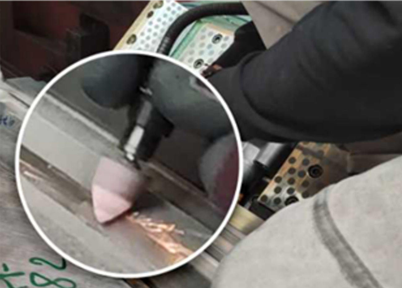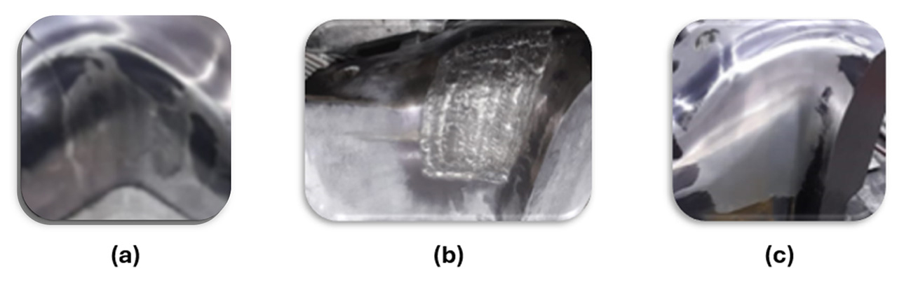 図4: (a) 鋼材の摩耗、(b) 鋼材の溶接、(c) 鋼材の研磨