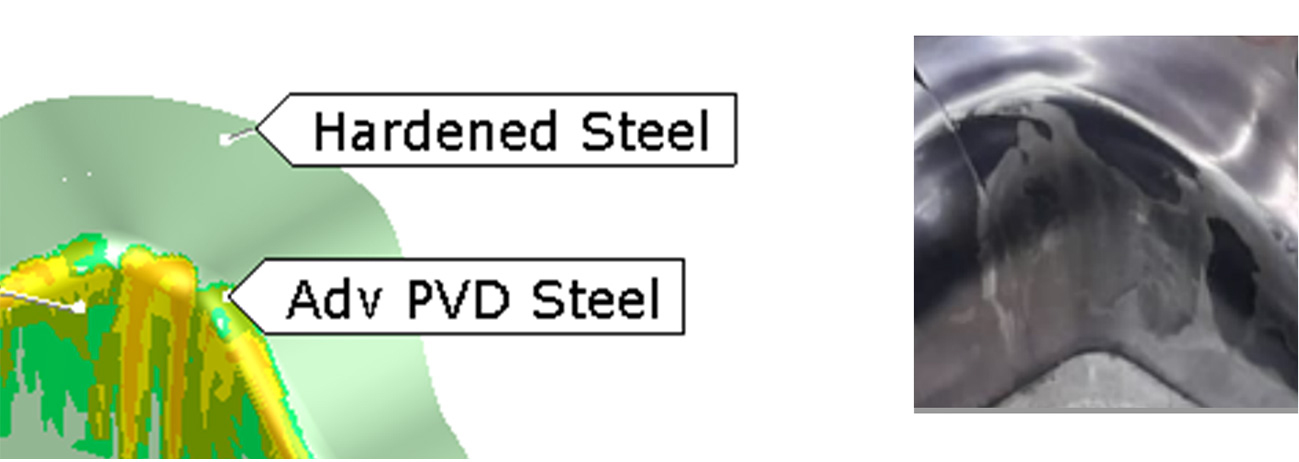 別途、鋼材の摩耗についても条件を比較しました(図7)。これにはAutoForm-DieAdviser、TriboForm Thermo plug-inのモジュールを使用しました。金型の加熱効果も考慮したより正確な摩擦モデルを加えることで、バーチャルモデルのさらなる改善を図りました。